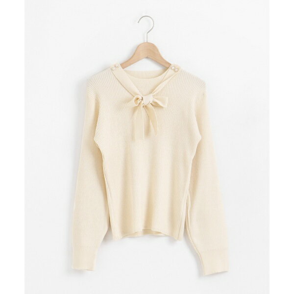 マジェスティックレゴンのボタンツキリボンニット(ボタン付リボンニット)シーンに合わせてリボンの取り外しができ、2パターンの雰囲気が楽しめるリブニット★