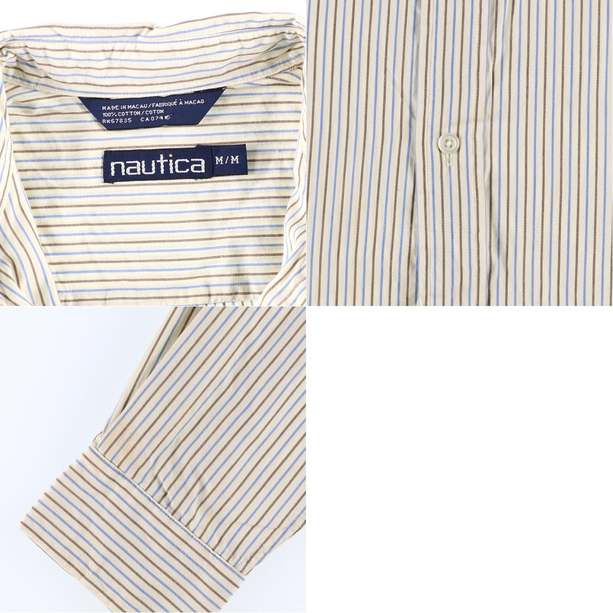 商品詳細ブランド・NAUTICA・ノーティカ・特徴・ボタンダウン・トラディショナル カジュアル・モデル/形状・長袖 ボタンダウンストライプシャツ・素材・コットン:100%・色・ブラウン系 茶色・ブルー系 青色・柄・ストライプ柄・ワンポイント・生産国・マカオ製・年代・90年代・サイズ・メンズL・表記サイズ:M・着丈:82cm・身幅:60cm・肩幅:51cm・袖丈:62cm・コンディション・C・カテゴリ・メンズ・長袖シャツ・ボタンダウンシャツ・トップス・商品番号・wbk3247・取扱店・ネットショップ・スタッフコメントNAUTICA 長袖 ボタンダウンストライプシャツ / メンズL / 商品番号 wbk3247※USEDですので使用感などございますが、まだまだご愛用していただけます。