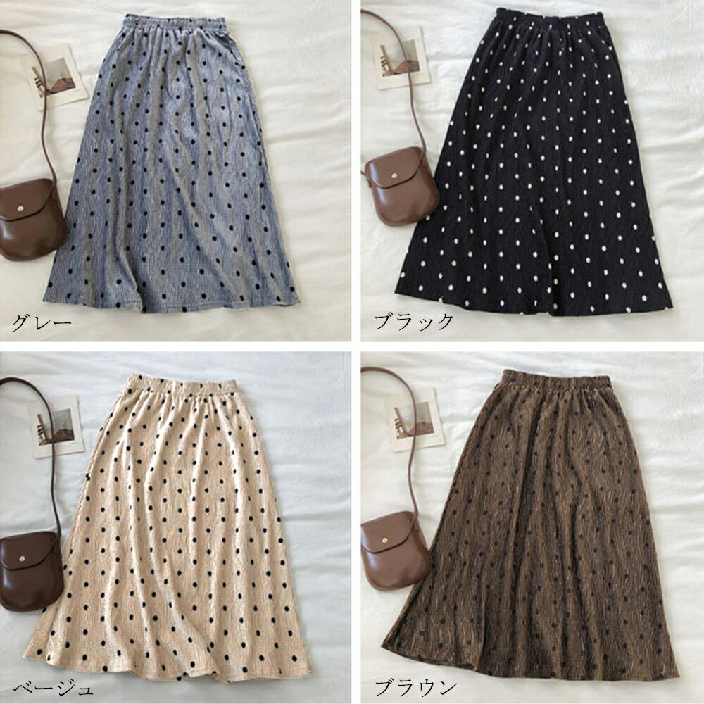 Aライン ドッド柄 黒 ベージュ グレー 茶色 M 歩く度に優雅に広がる、魅力たっぷりなプリーツスカートです。
